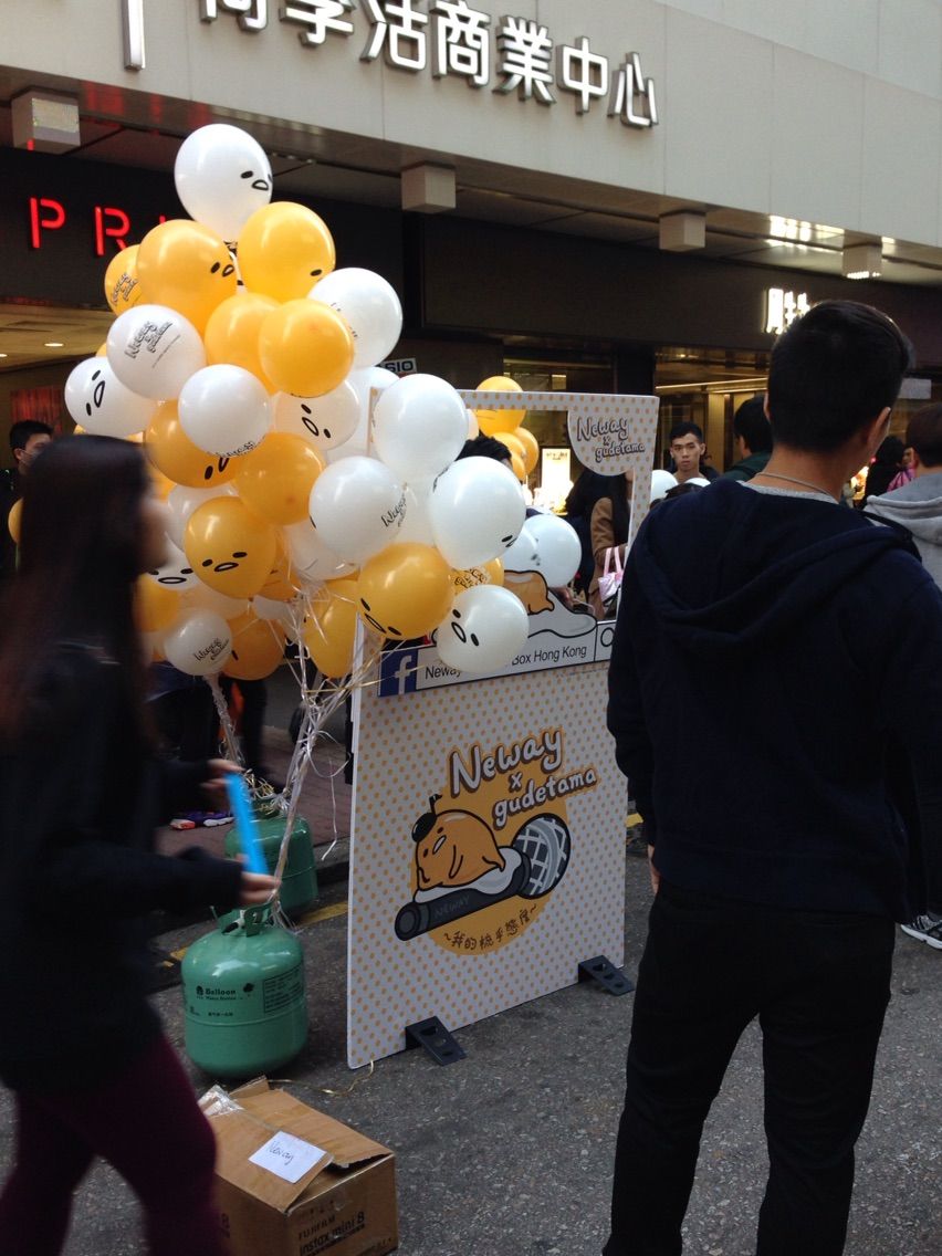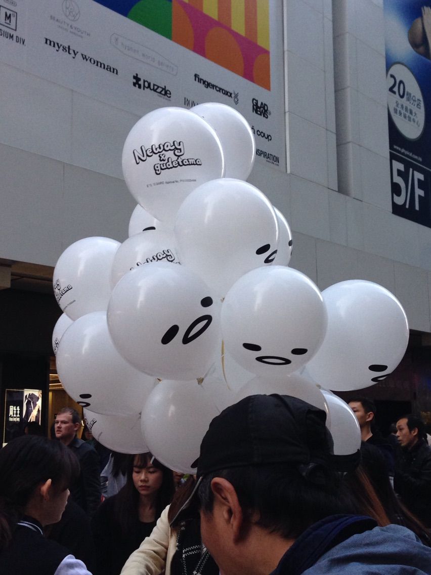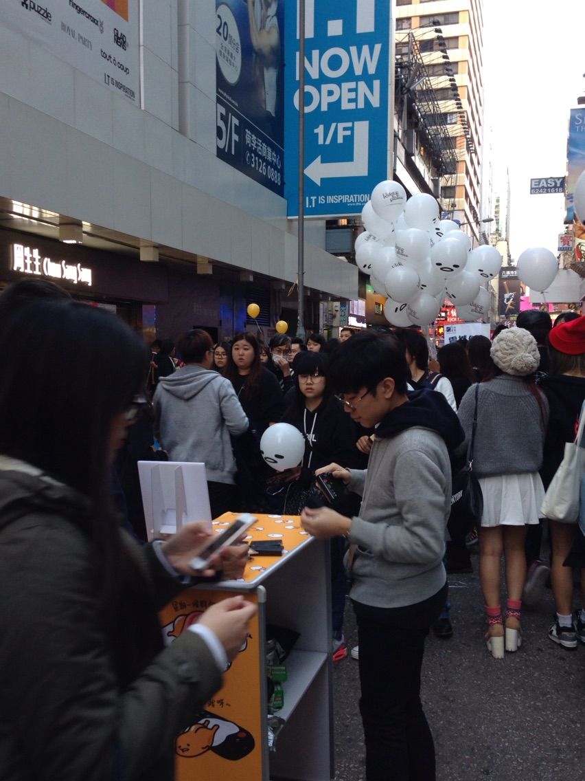 2015-12-20 ぐでたま人気が止まらない香港 昨日モンコックをぶらぶらしていたら、 黄色と白の風船を持ってる人を沢山見かけました。 犯人は、 ぐでたま 何が良いのか私にはさっぱりわかりませんが、香港で大人気。 日本でも流行っているのでしょうか? まずここで何かに登録するのか?? すると、間も無く、 ぐでたまフレームで記念撮影ができるらしい。 しかし… 無料とあって大行列 すごいなぁ。 熱しやすく冷めやすい香港人。 ぐでたま人気はいつまで続くか!