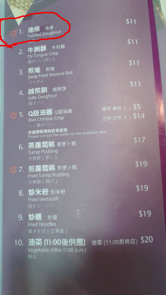 本当は、メニュー表の油條の下にある、「牛利酥」が好きですが、