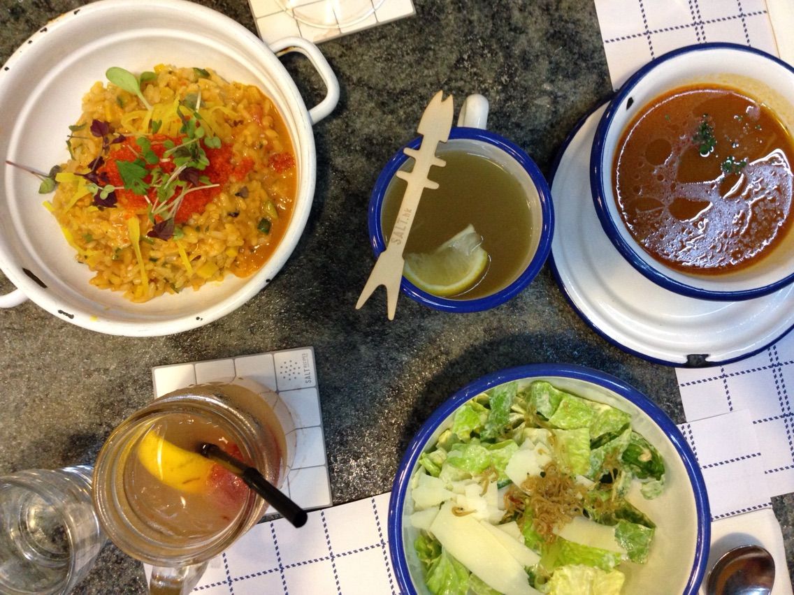 店内は木目調の床と壁をバックに、白を基調としたインテリア。
